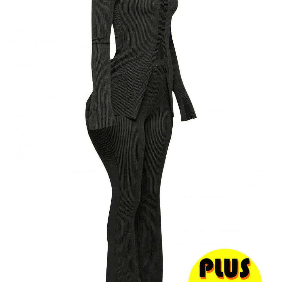 Plus Size Ribbed Pant Set With Slit Detail
