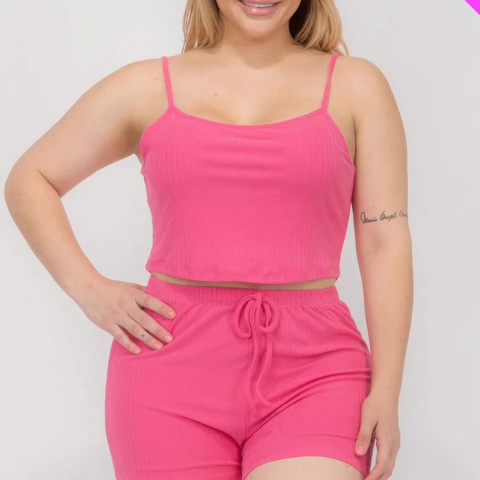 Design: Featuring a solid ribbed cami top paired with matching shorts for a chic and trendy look.