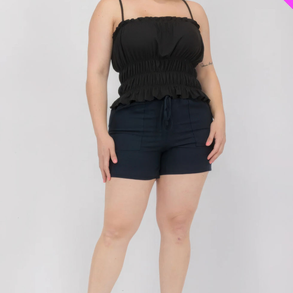 Elevate your style with our Plus Size Tiered Shirred Body Crop Top in Black. This top combines elegant details with a flattering fit, making it a versatile addition to your wardrobe.