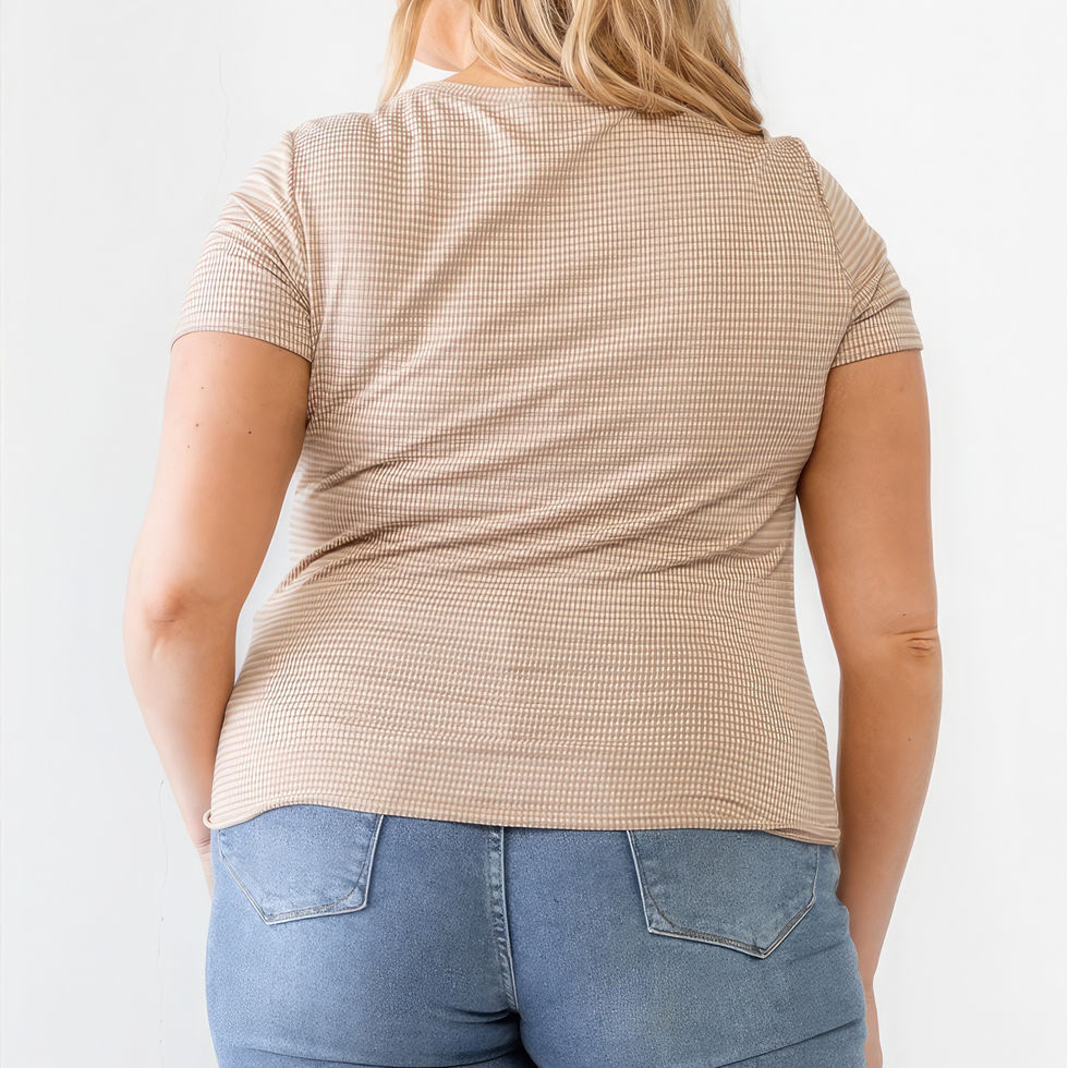 Introducing our Plus Taupe Waffle Knit Short Sleeve Top—a versatile addition to your wardrobe that effortlessly blends casual comfort with street style coolness.