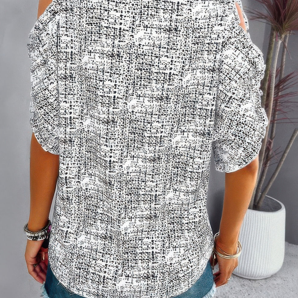 This printed mandarin collar cold shoulder loose top blends elegant detailing with a playful twist, perfect for adding a unique touch to your casual wardrobe. Crafted from 100% polyester, it’s lightweight and comfortable, making it ideal for all-day wear. The mandarin collar lends a refined look, while the cold shoulder cut-outs add a modern, breezy flair. With its relaxed fit and striking print, this top is a standout choice for everything from casual outings to vacation getaways. Style it with jeans or shorts for a chic, easygoing ensemble.