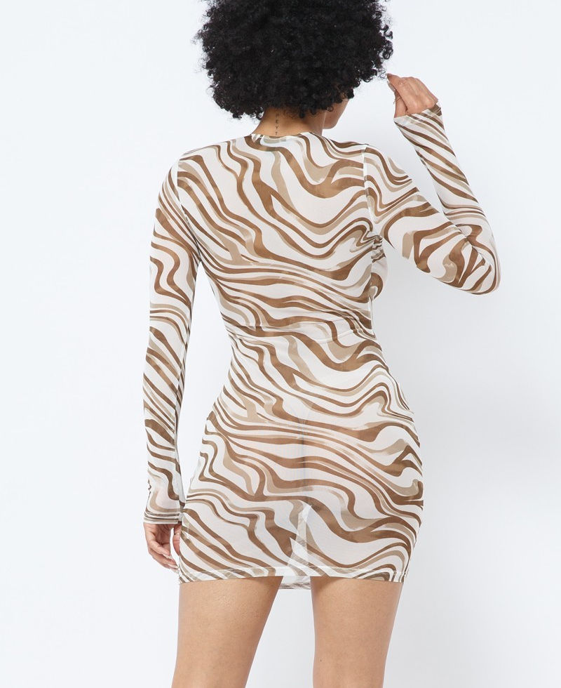 Make a bold statement with our Printed Mesh Dress in Mocha. Add it to your cart now and experience the perfect blend of fashion and comfort!