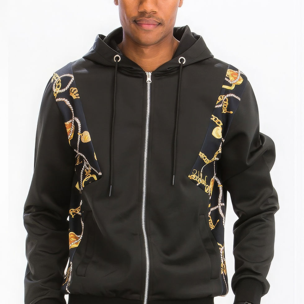 Elevate your activewear with our Printed Poly Span Track Set in Black. Add it to your cart now and experience the perfect blend of comfort and contemporary style!