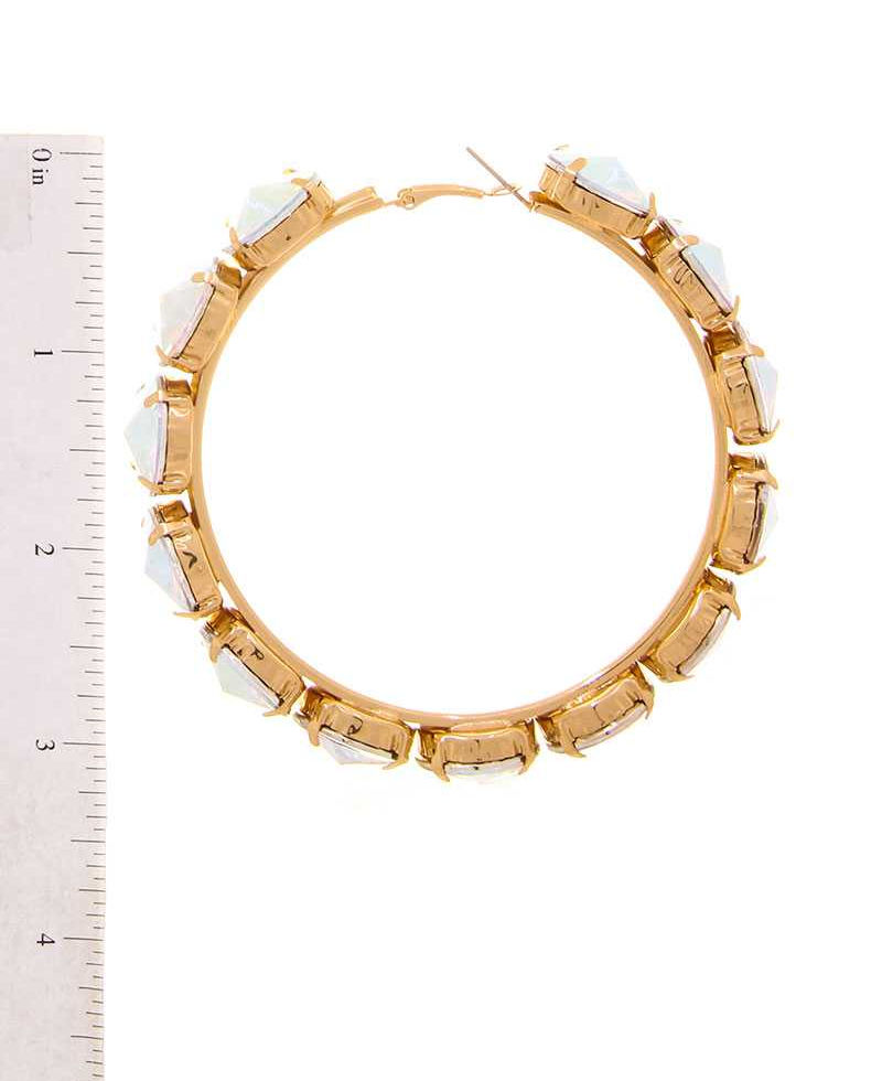 Rhinestone 3.25 Inch Classic Hoop Earring