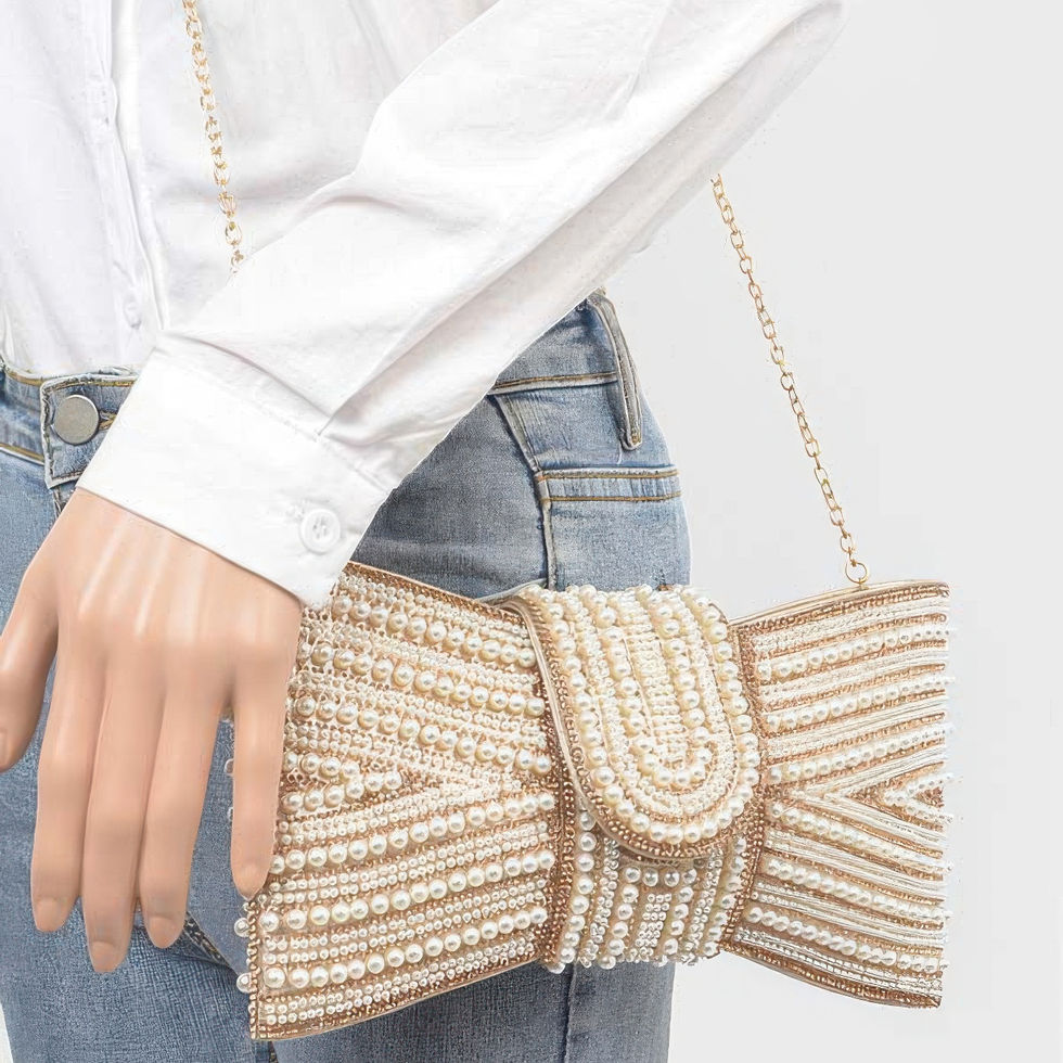Elegant and eye-catching, the Rhinestone and Pearl Party Clutch is the perfect finishing touch for any special occasion. Crafted from sleek polyurethane and adorned with shimmering rhinestones and classic pearl accents, this clutch blends timeless charm with glamorous sparkle. Its slim, structured silhouette is ideal for holding evening essentials, while the mixed metal detailing adds a refined touch. Whether you're attending a wedding, cocktail party, or formal event, this clutch brings effortless sophistication to every look.