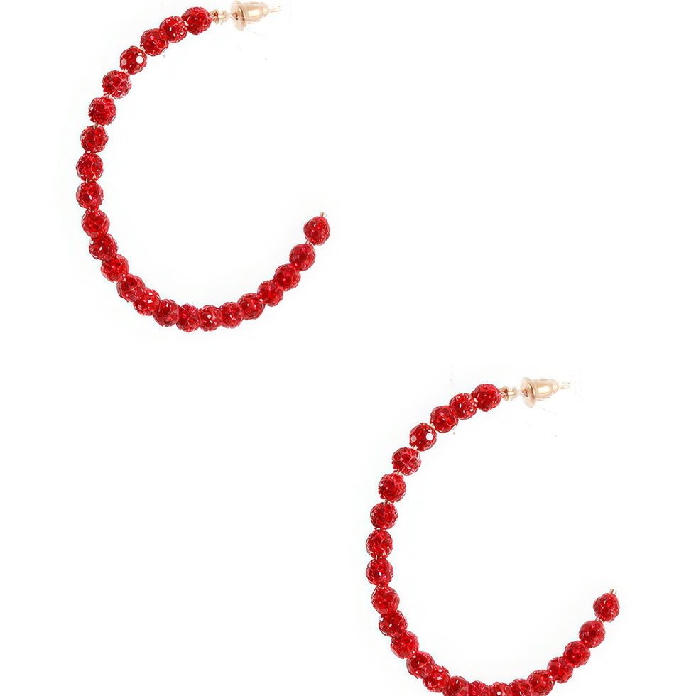 Make a statement with our "Rhinestone Bead Open Hoop Post Earring" in the luxurious combination of Gold, Multi, Red, Silver, and Black. Add them to your jewelry collection and shine bright on any occasion. Shop now for the perfect blend of glamour and sophistication!