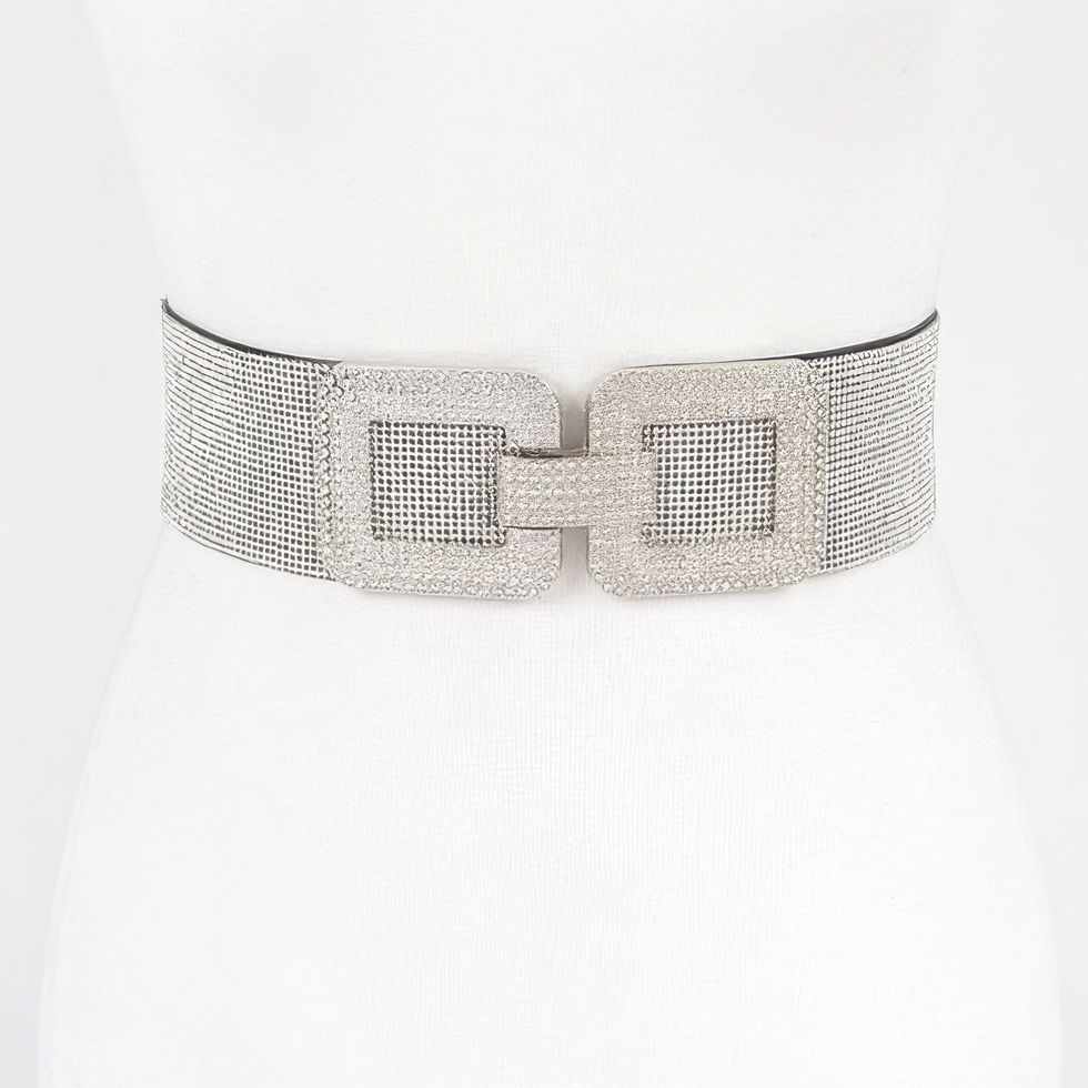 Bring timeless charm to your wardrobe with the Elegance Plus Belt. Featuring a polished silver-tone square buckle and delicate bead embellishments, this belt is designed for both comfort and style. Its wide elastic band gently hugs your figure, creating a flattering silhouette that pairs beautifully with any look.