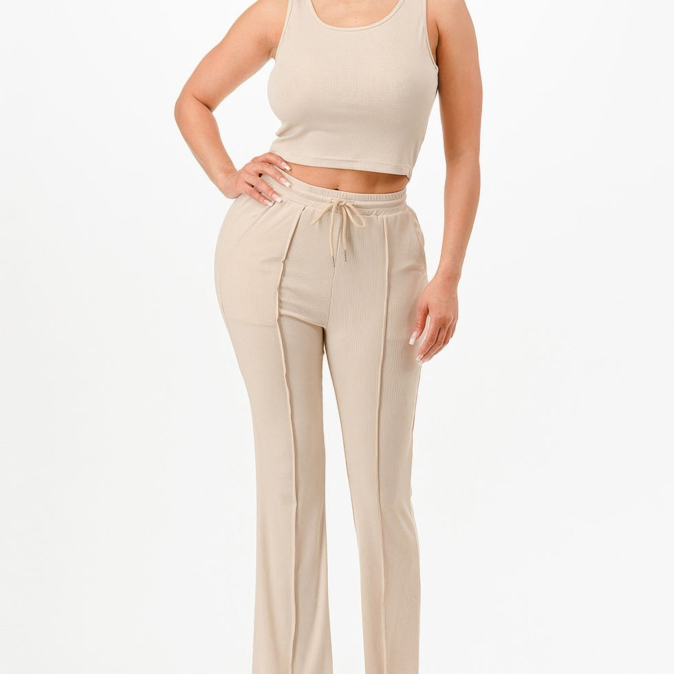 Add the Ribbed Tank Top and Pant Set in khaki to your cart today and experience the perfect blend of comfort, style, and versatility!