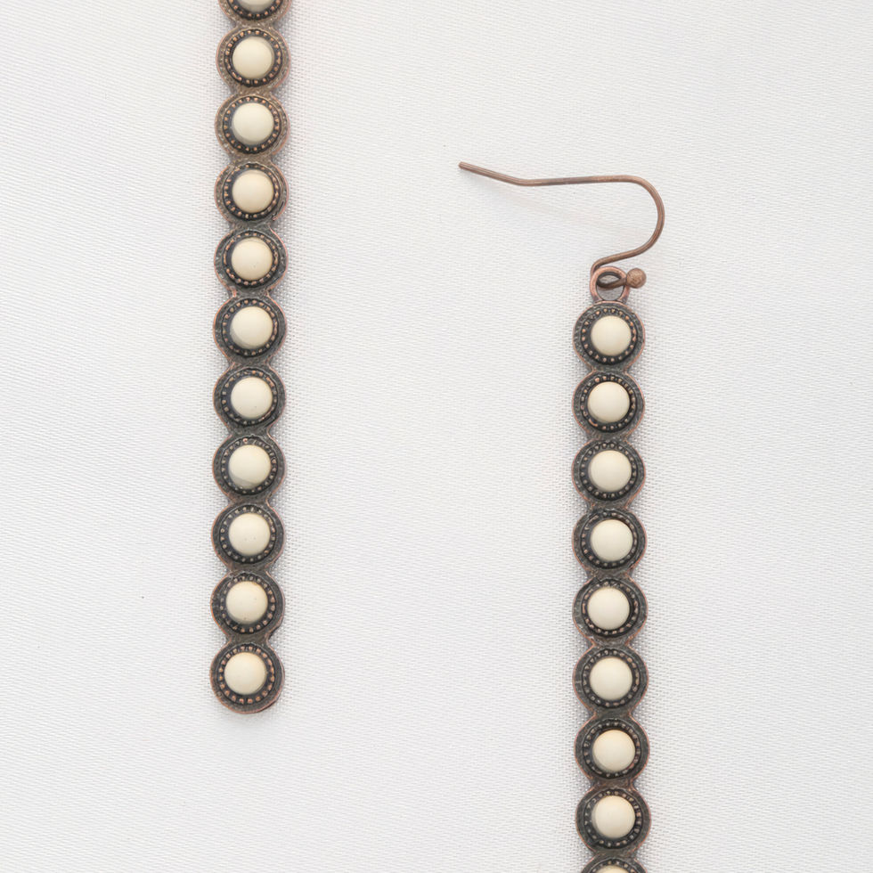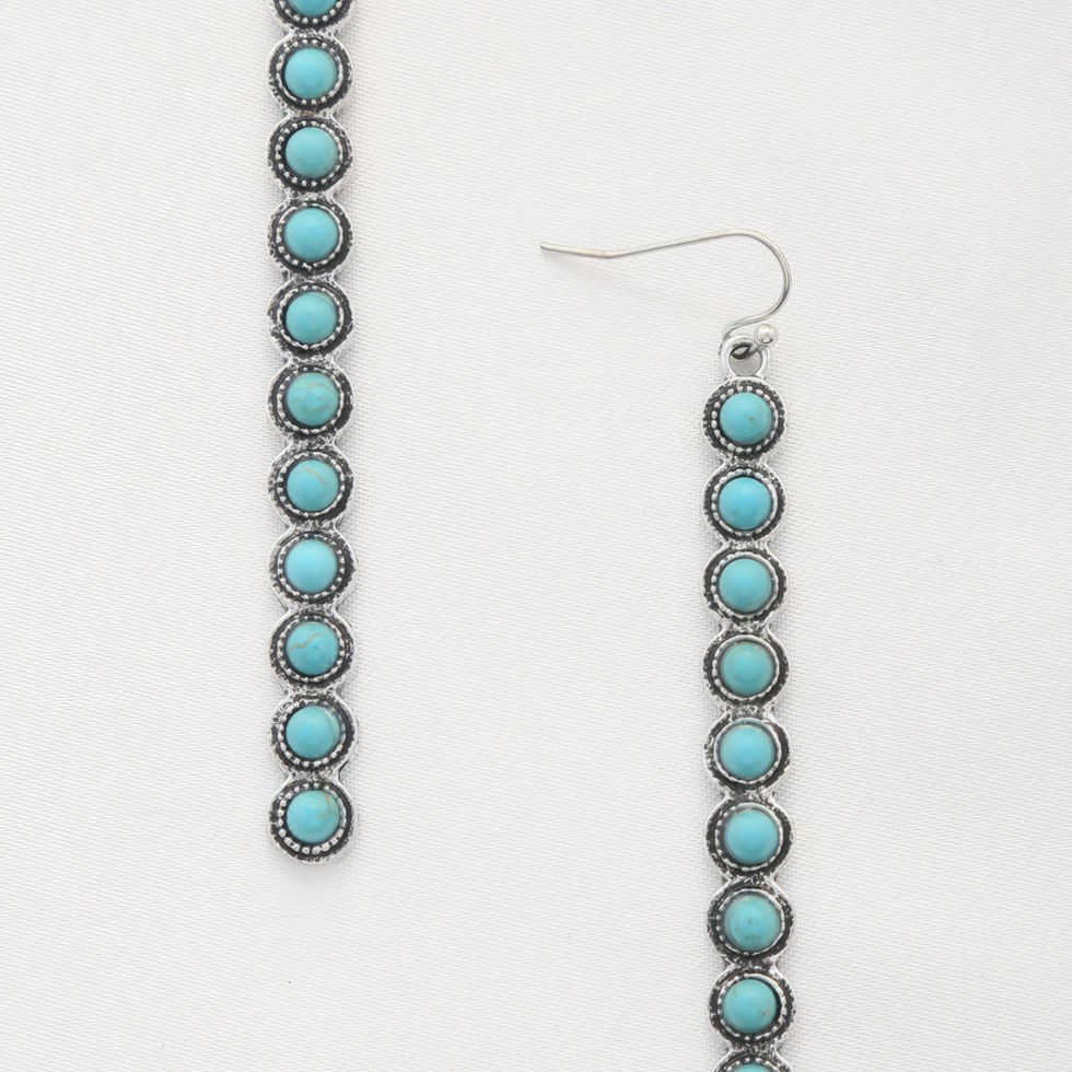 Elevate your earring collection with the Rodeo Western Round Bead Pattern Metal Dangle Earring. Choose between Turquoise and White to add a touch of western charm and make a bold fashion statement. Add them to your cart now for a unique and stylish accessory!