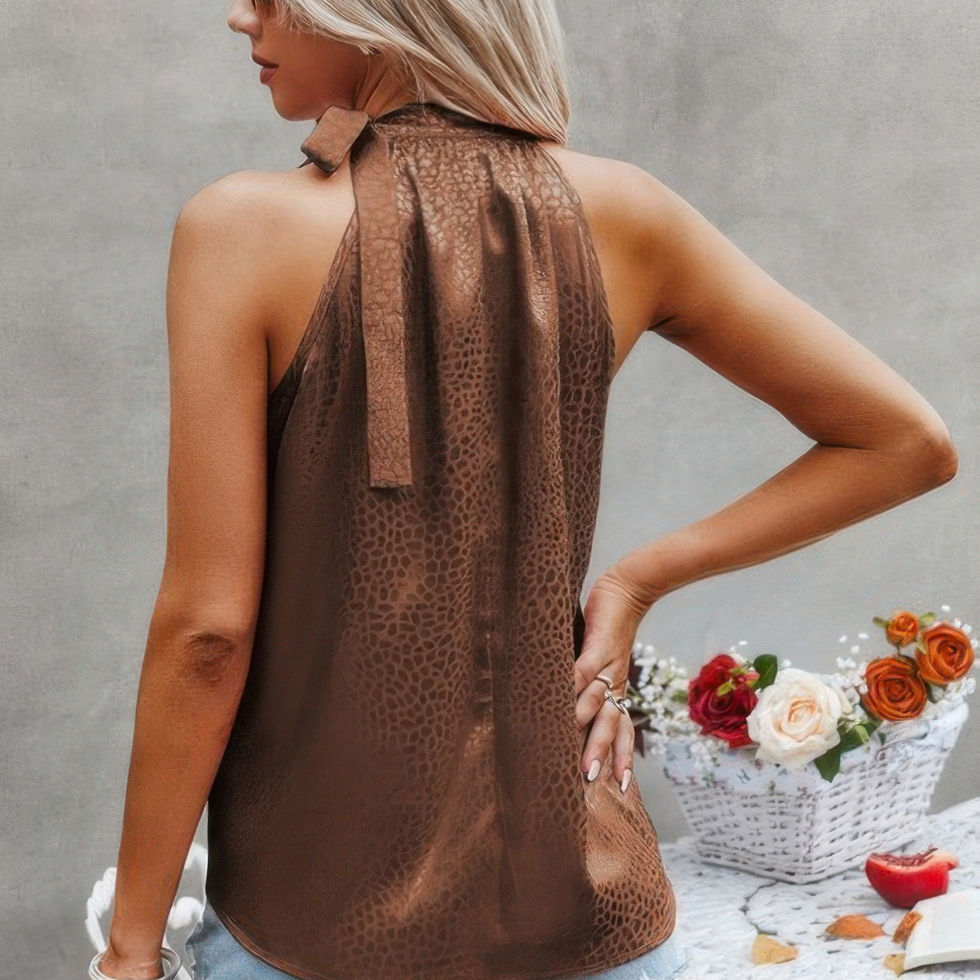 Sleek and sultry, this satin leopard cami brings a bold edge to your warm-weather wardrobe. Designed with a halter neckline and slim spaghetti straps, it features a glossy satin finish that drapes beautifully on the body. The leopard print adds fierce, fashion-forward appeal, while the lightweight fabric with a hint of stretch ensures a comfortable fit. Perfect for layering or wearing solo, this cami transitions effortlessly from daytime chic to evening glam.