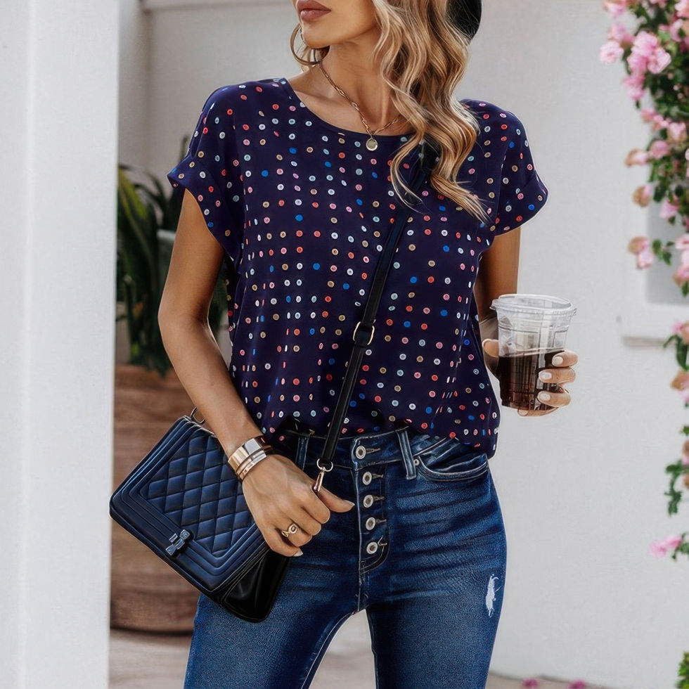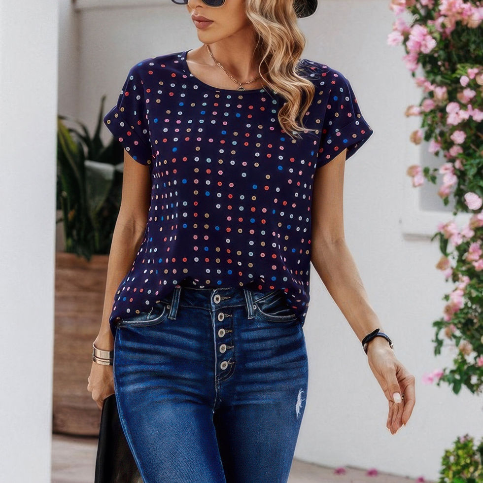 • Color Polka Dot Loose Fit Scoop Neck Blouse for added style and flair
