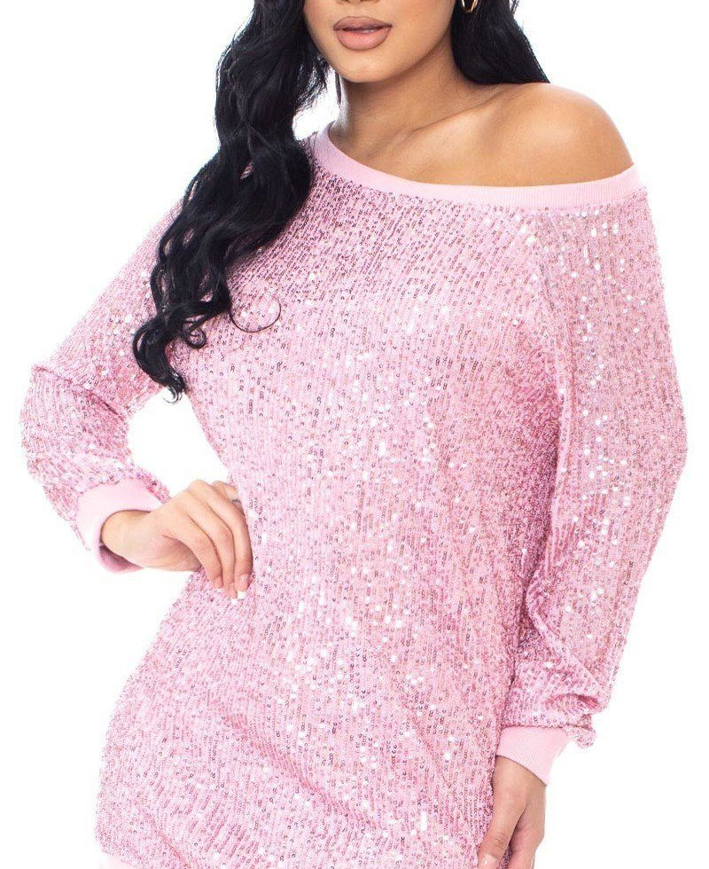 Make a statement with our Sequin Wide Neck Boxy Mini Dress in elegant Blush. Add it to your cart now for a glamorous and stylish addition to your fashion collection!