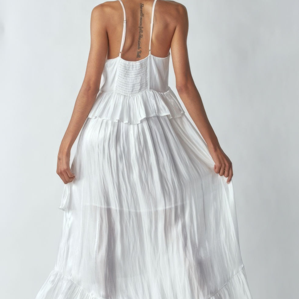 Introducing our Sleeveless Ruffle Dress, a captivating piece designed to dazzle with its shimmering material and elegant details. This dress features adjustable straps, an asymmetric hemline, and delicate ruffles for a sophisticated touch.