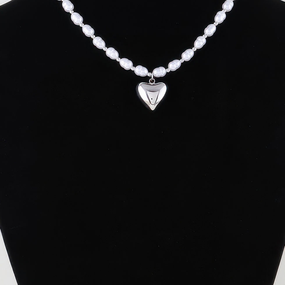 This necklace brings together the classic elegance of pearls with a modern heart pendant design, creating a piece that's both timeless and contemporary. The gold cream and silver cream finishes provide a versatile and chic touch, making it a must-have addition to your jewelry collection.
