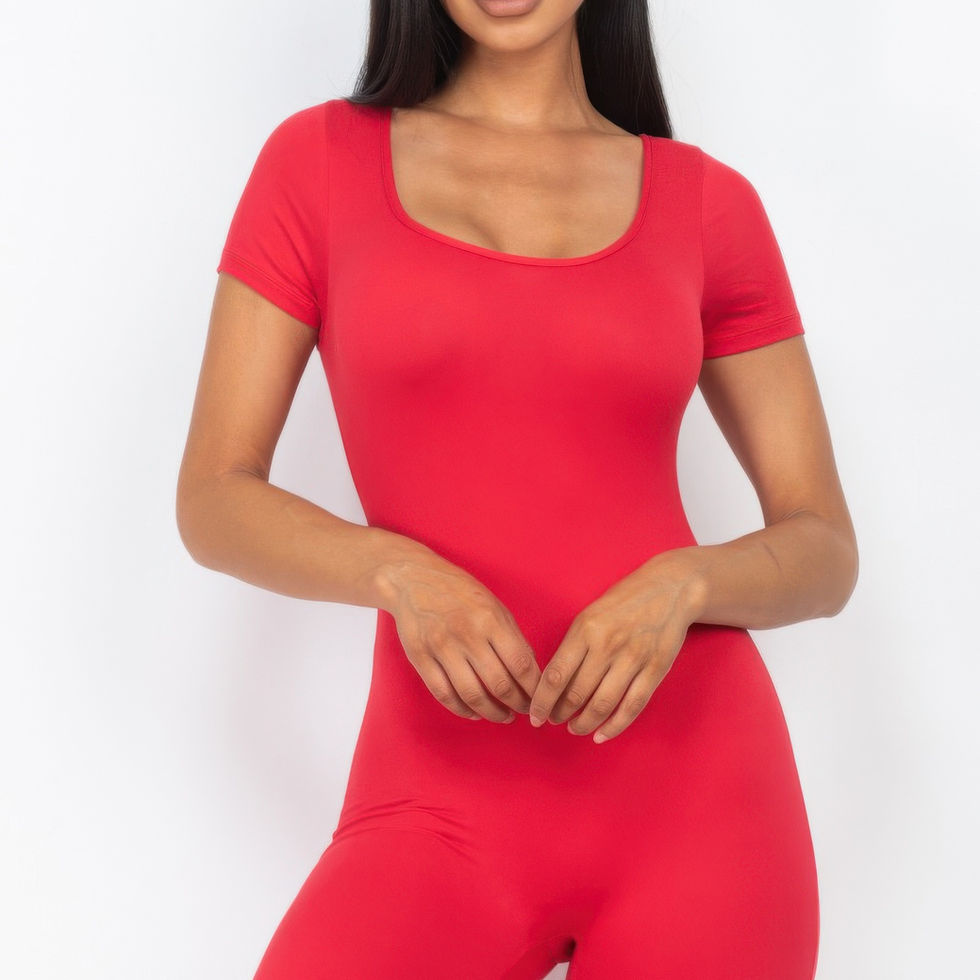 Add the Short Sleeve Scoop Neck Bodycon Romper to your wardrobe today and enjoy the perfect blend of comfort, style, and versatility!