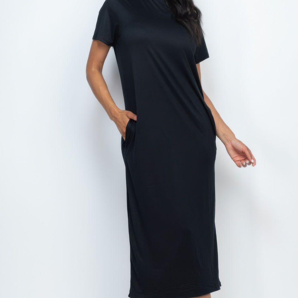 Add the Side Pocket Tee Dress to your wardrobe today and enjoy the perfect combination of comfort, style, and convenience!
