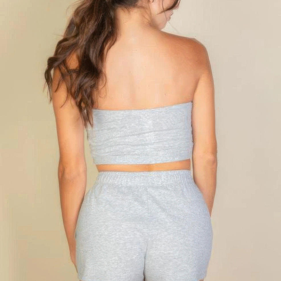 Design: The simple yet stylish design features a trendy tube top paired with matching shorts, creating a complete look effortlessly.