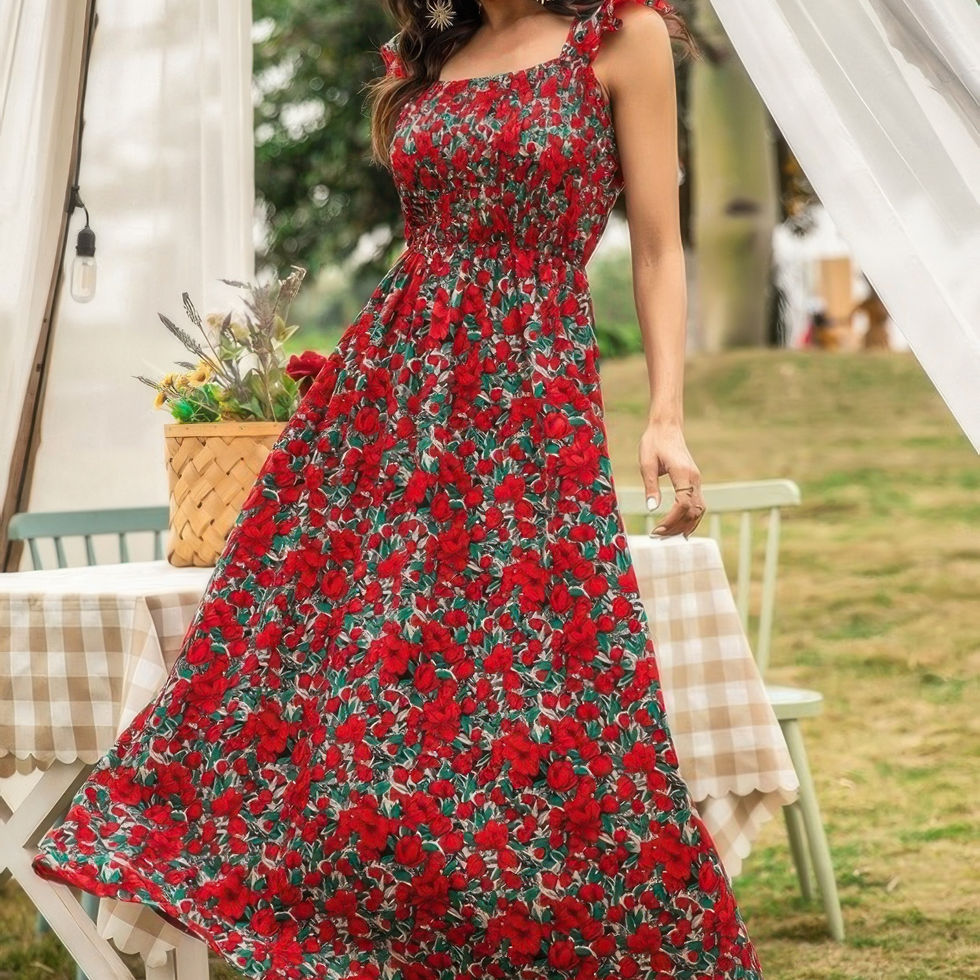 Bring a touch of romance to your wardrobe with this Sleeveless Floral Low Neck Maxi Dress, designed for effortless elegance and comfort. Made from breathable, lightweight polyester, this dress features a flattering low neckline, ruffle details, and a flowing silhouette with a charming floral print. Ideal for vacations, outdoor gatherings, or casual days, this versatile maxi dress ensures you look and feel your best with minimal effort. Pair it with sandals or heels for a polished yet relaxed look.