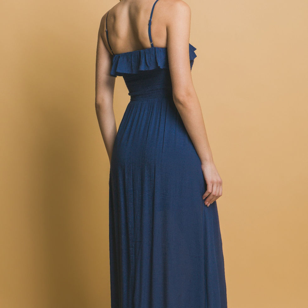 The Smocked Ruffle Maxi Dress is a charming and versatile piece that effortlessly enhances your everyday wardrobe. Made from a comfortable blend of 65% rayon and 35% polyester, this dress combines a flattering smocked waist design with a relaxed fit that ensures ease of movement throughout the day. The ruffle accents add a playful, feminine touch, while the maxi length creates an elegant and elongating silhouette. Perfect for a variety of occasions, from brunches to beach strolls, this dress offers a delightful mix of comfort and style.