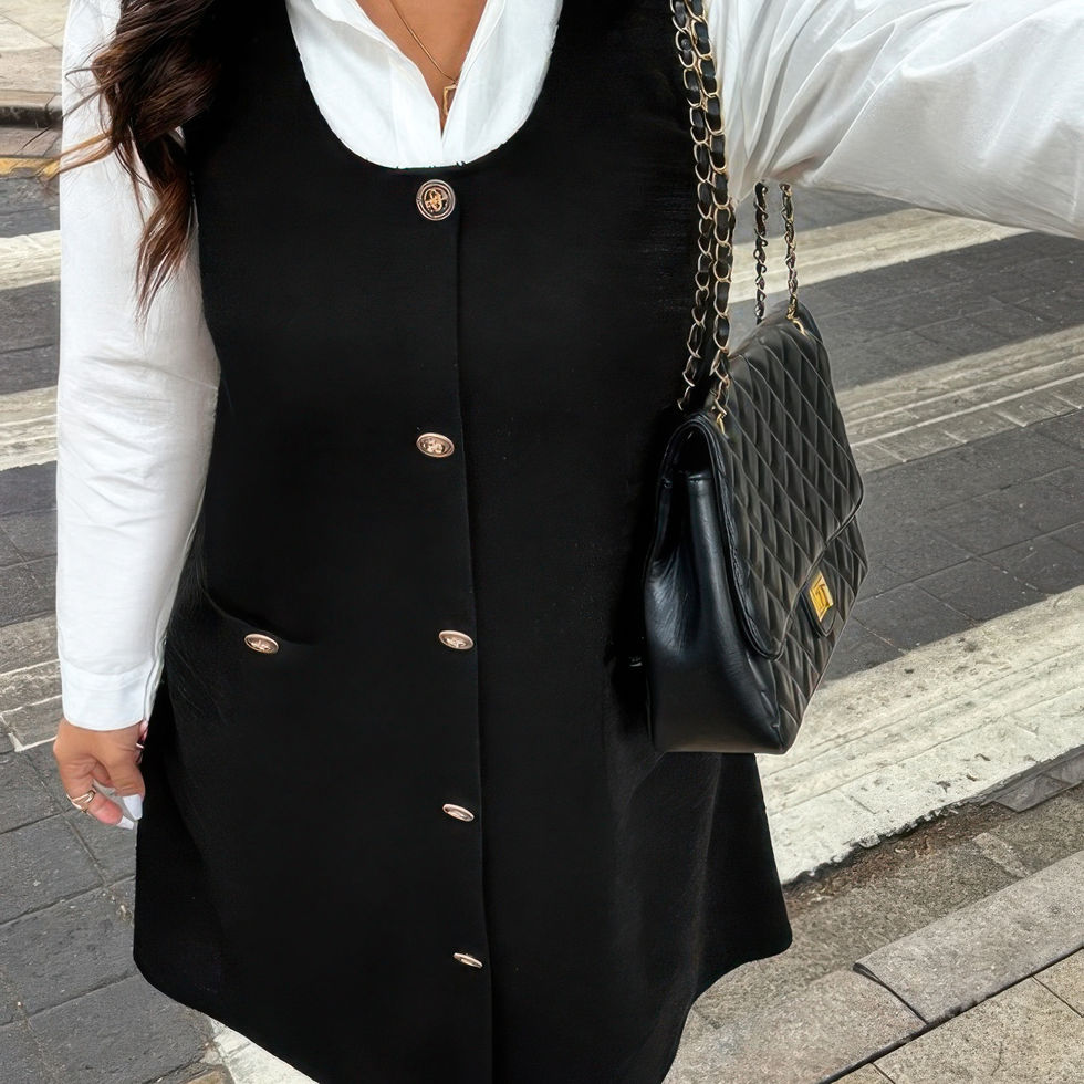 Add texture and charm to your wardrobe with this solid corduroy overall dress, designed with a classic scoop neckline and button-down front. The structured corduroy fabric brings a vintage-inspired feel, while the stretch blend ensures comfort and flexibility. Perfect for layering over your favorite tops or sweaters, this dress offers year-round styling potential. Whether you're heading to a casual outing or a weekend getaway, its clean lines and timeless silhouette make it a versatile staple. Effortlessly cool and easy to wear, it pairs well with sneakers or boots alike.