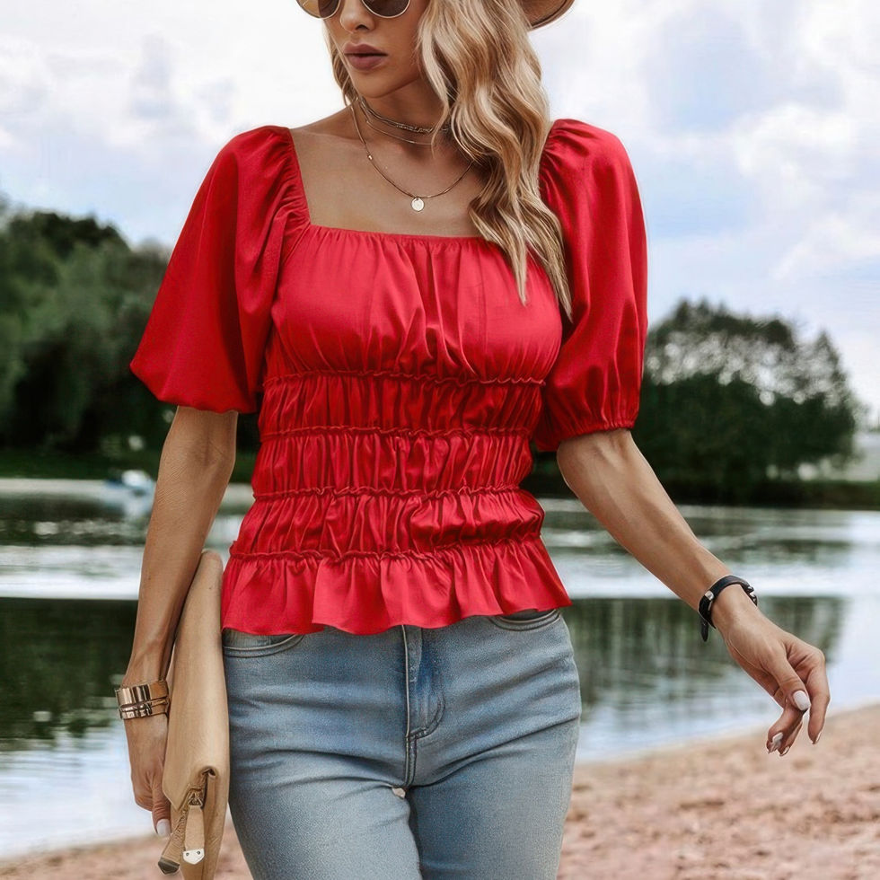 Embrace effortless style with the Solid Square Neck Shirred Flounce Sleeve Peplum Blouse. This piece is designed to be a versatile and chic addition to your wardrobe, perfect for a variety of events. Crafted from 100% polyester., it offers both comfort and a flattering silhouette. Whether you're heading out for casual/daily/outdoor/vacation/holiday/school/going out., this item ensures you'll look and feel your best.