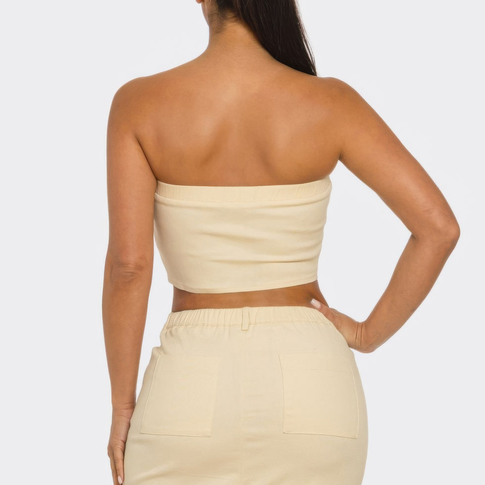 Futuristic flair meets sleek styling in this Space Girl Skirt Set, featuring a standout tube top and coordinating mini skirt. The tube top is detailed with silver eyelets and a bold septum accent, giving it an edgy, space-age vibe. Designed for comfort, the back features a stretchy spandex panel for a flexible fit. The matching skirt includes a zipper closure and silver button detail, adding structure and shine. Crafted from 100% polyester, this set is smooth, comfortable, and ready to turn heads—perfect for festivals, parties, or bold nights out.