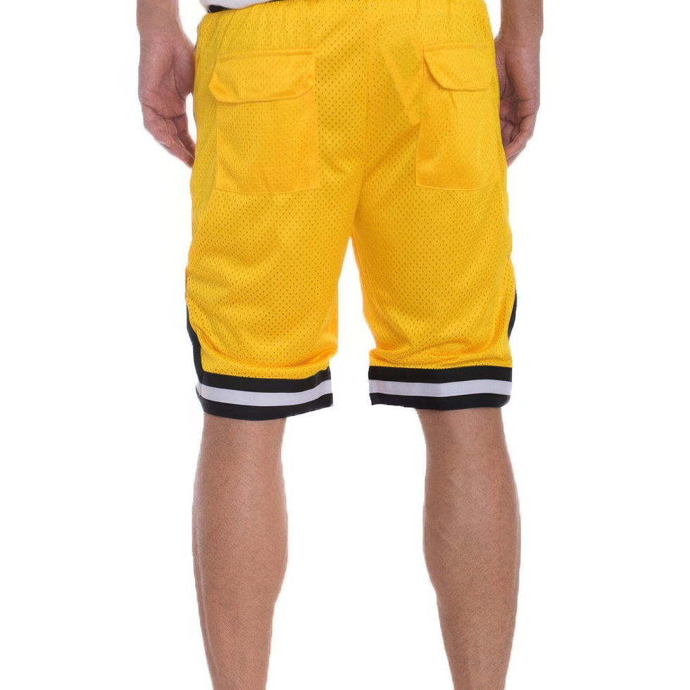 Why Choose Striped Band Solid Basketball Shorts These shorts stand out with their sporty look and functional design. The contrast-colored stripes add a touch of style, while the zippered side pockets and additional back pockets offer practical storage for your essentials. The combination of soft mesh fabric and a comfortable fit makes these shorts a go-to choice for both athletic performance and casual wear.