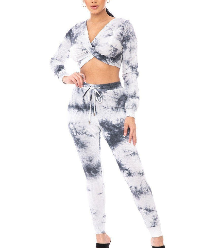 CROPPED TOP DEEP V-NECK TWIST FRONT ELASTIC WAIST WITH DRAWSTRING