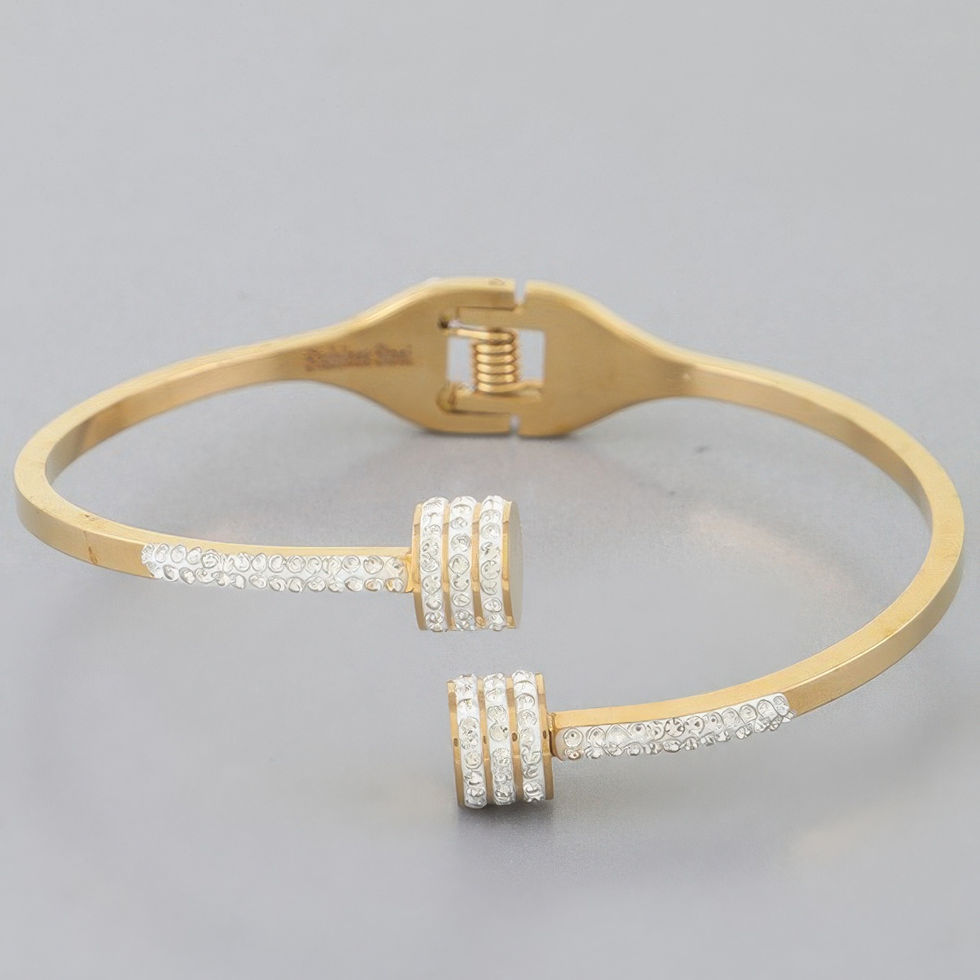 Design: Featuring two nail-inspired wraps adorned with clear rhinestones, this bracelet has a bold and contemporary design. The sparkling rhinestones add a refined touch, contrasting beautifully with the sharp, geometric lines.