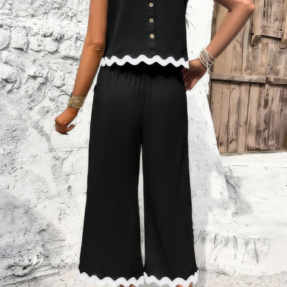 Two Pieces Printed Sleeveless Pockets Sets