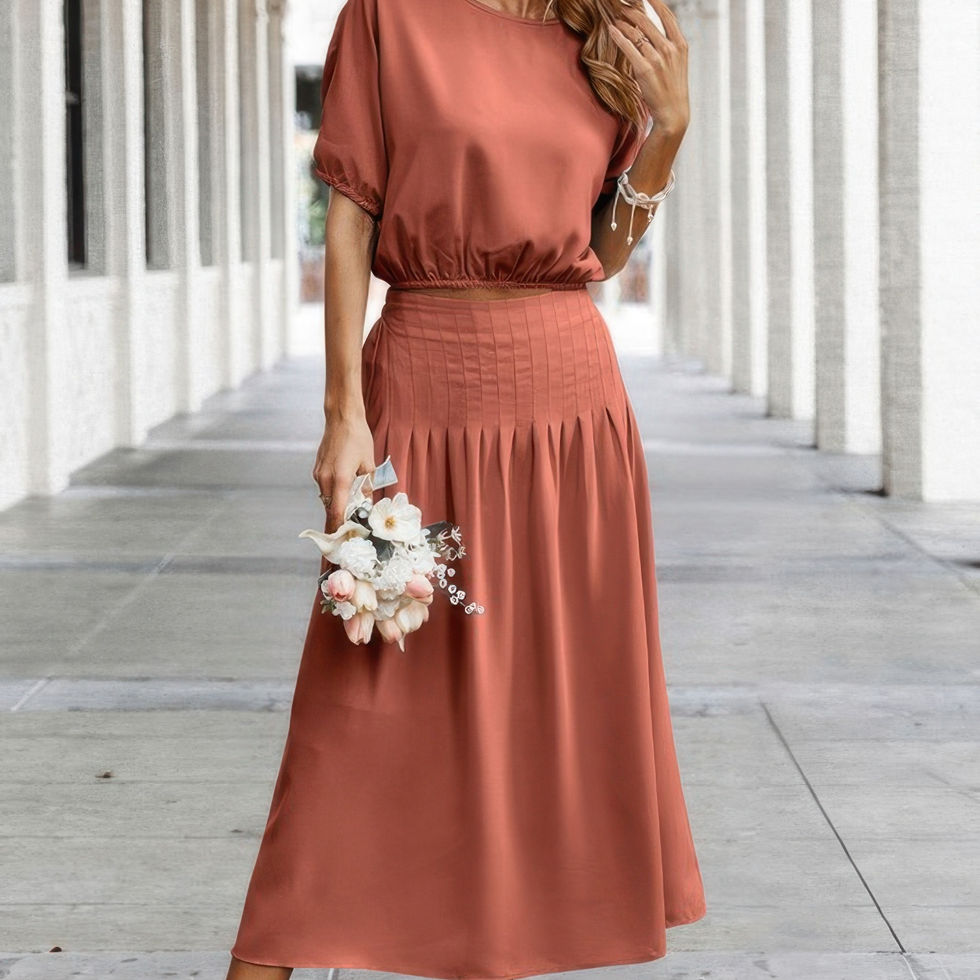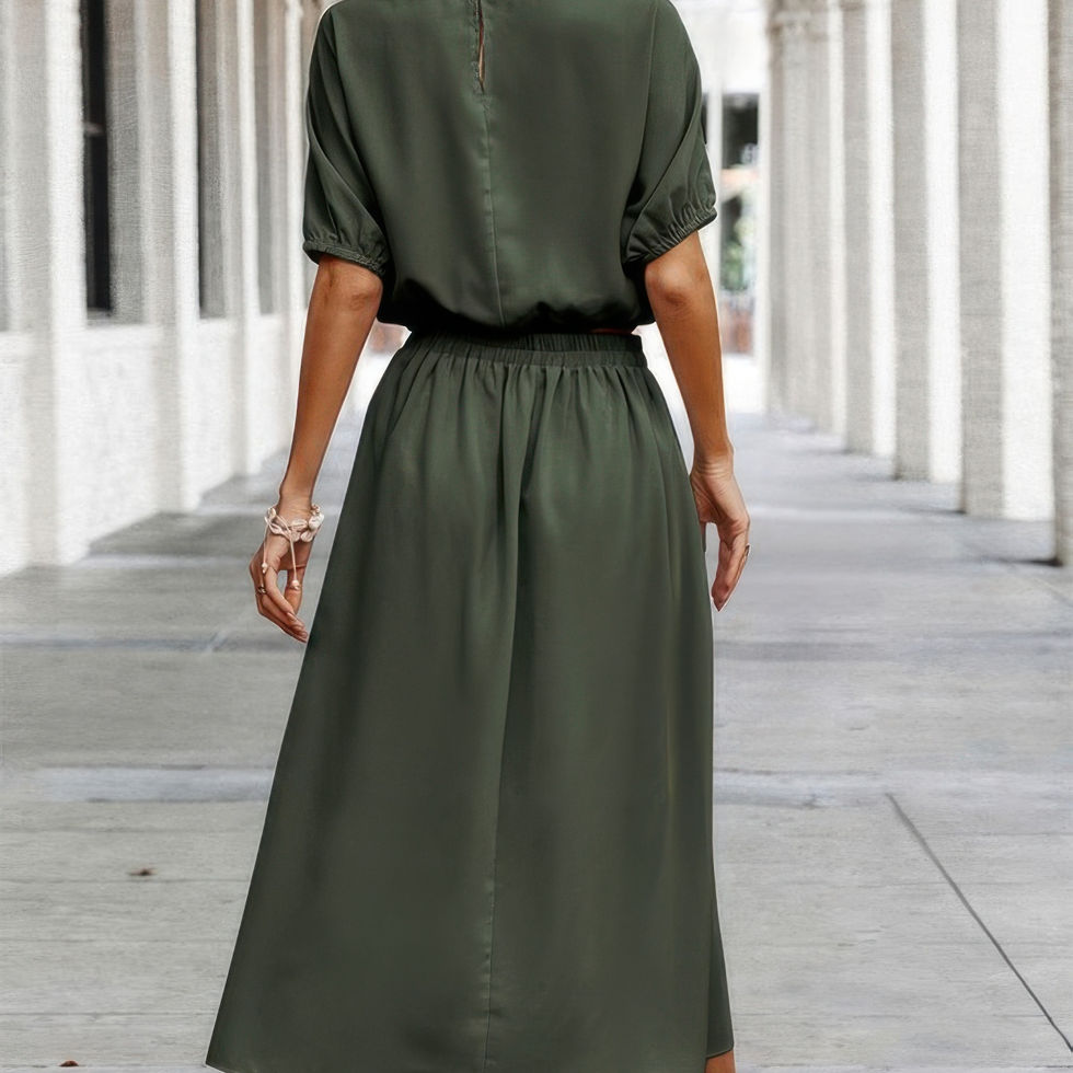 • Two Pieces Solid Color Loose Puff Sleeve Pleated Sets for added style and flair