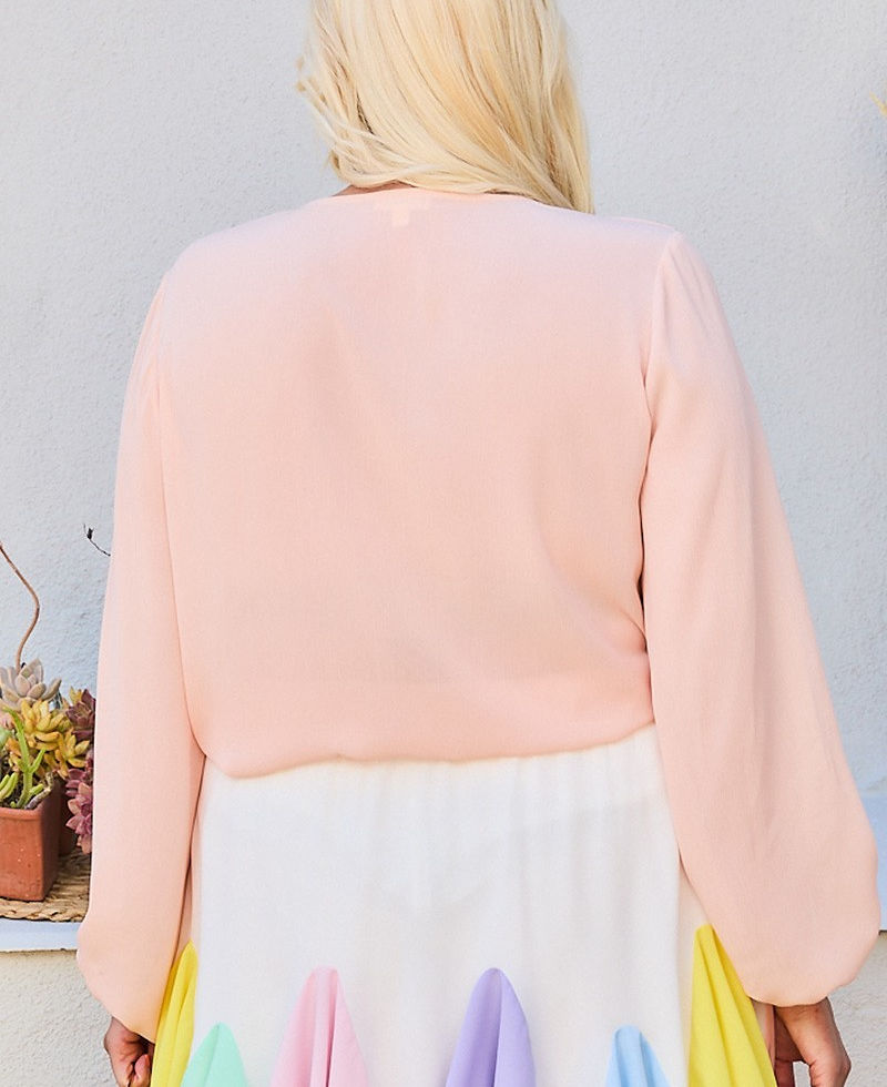 Introducing our V Neck Bubble Sleeve Solid Top, available in 1XL, 2XL, and 3XL for a perfect fit for all body types. Crafted from 100% Polyester, this top features a stylish V-neck design and charming bubble sleeves, all in a soft and elegant Blush shade.