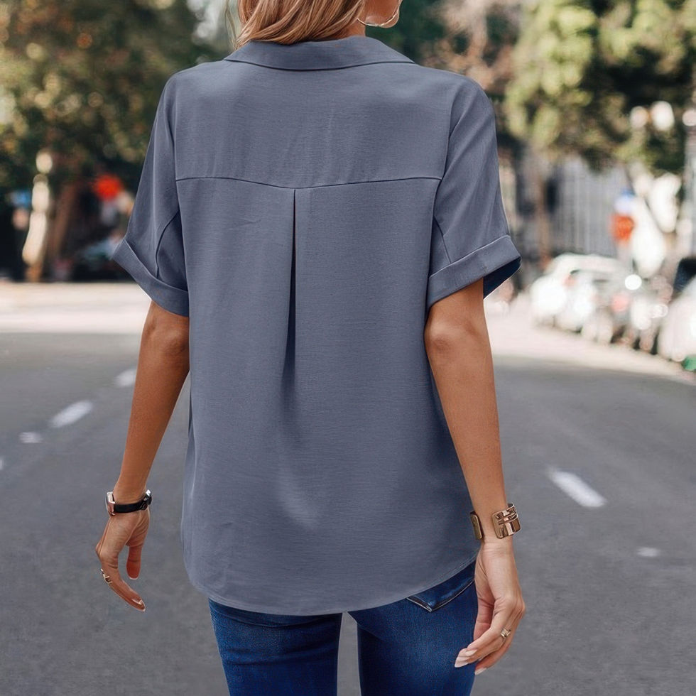 • V Neck Button Down Roll Up Sleeve Loose Pocket Blouse for added style and flair