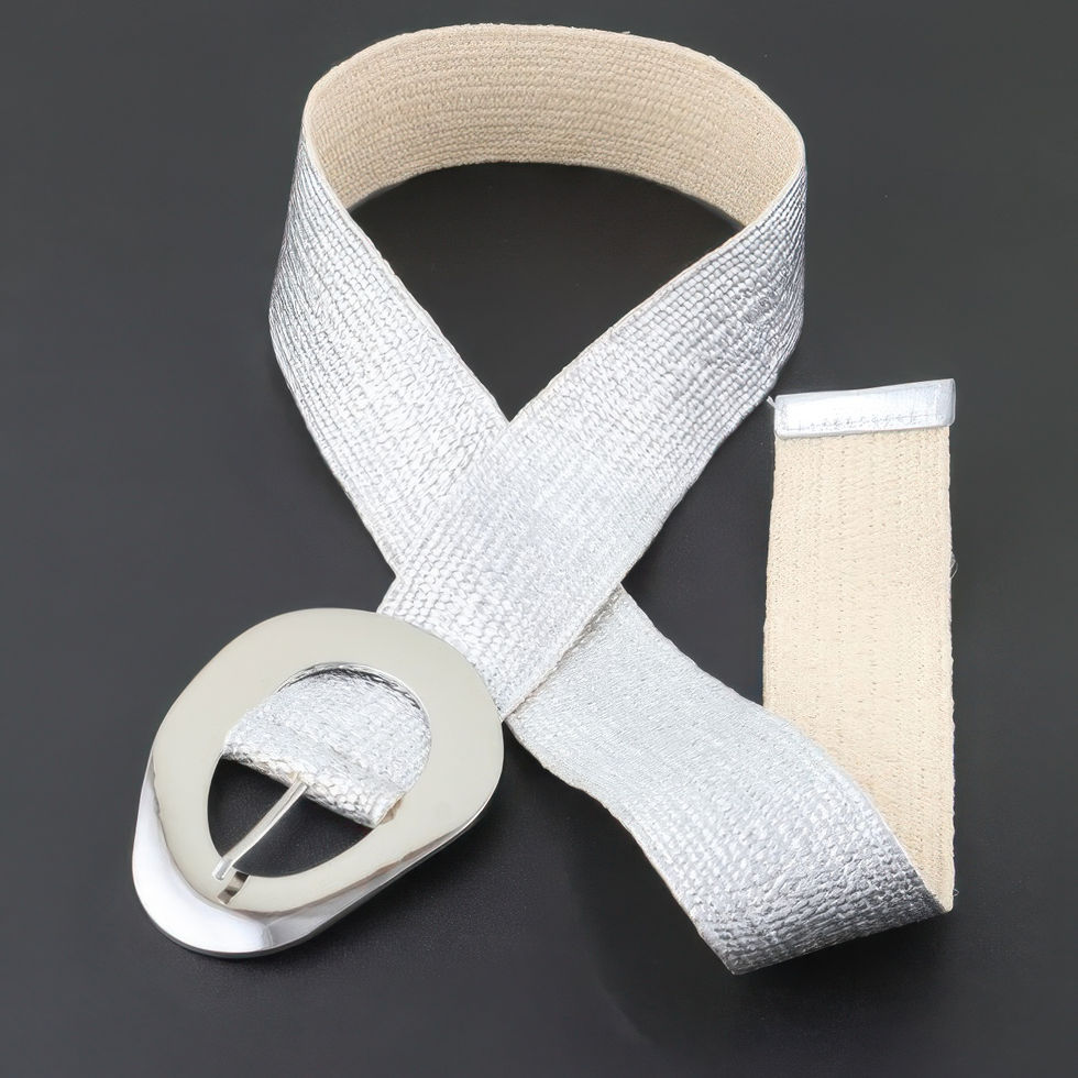 Vintage Metal Buckle Metallic Stretch Straw Belt