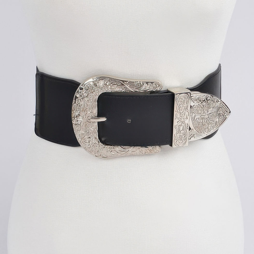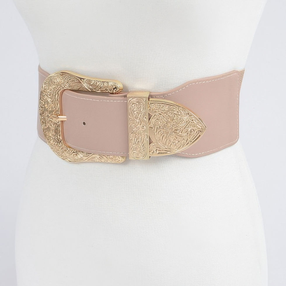 Bold and structured, the Wide Multi Metal Elastic Belt brings luxe sophistication to your wardrobe. Designed with a wide faux leather band and gleaming metal buckle, this stretch belt adds definition and polish to any outfit. A stylish staple for both elevated everyday wear and formal looks.