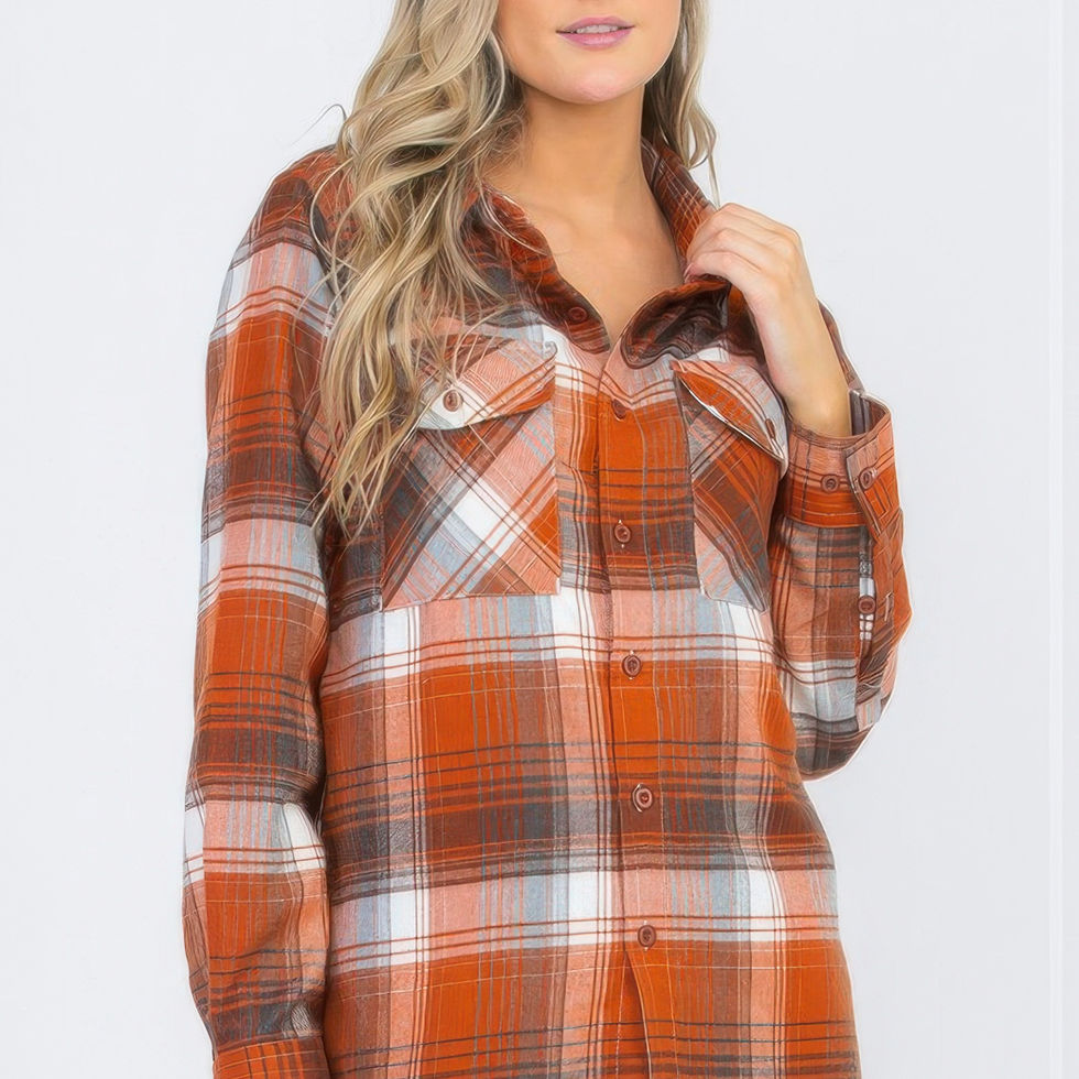 The Women’s Boyfriend Long Sleeve Checkered Flannel delivers the perfect balance of cozy comfort and effortless cool. Designed in a relaxed oversized fit, this flannel shirt features an allover plaid pattern with a flat collar and dual chest pockets for a timeless look. Crafted from a soft blend of 60% polyester and 40% cotton, it offers a breathable yet warm layer for transitional weather. Finished with button-up front and long sleeves, it’s perfect for pairing with leggings, denim, or layering over tees for an easy, laid-back vibe.