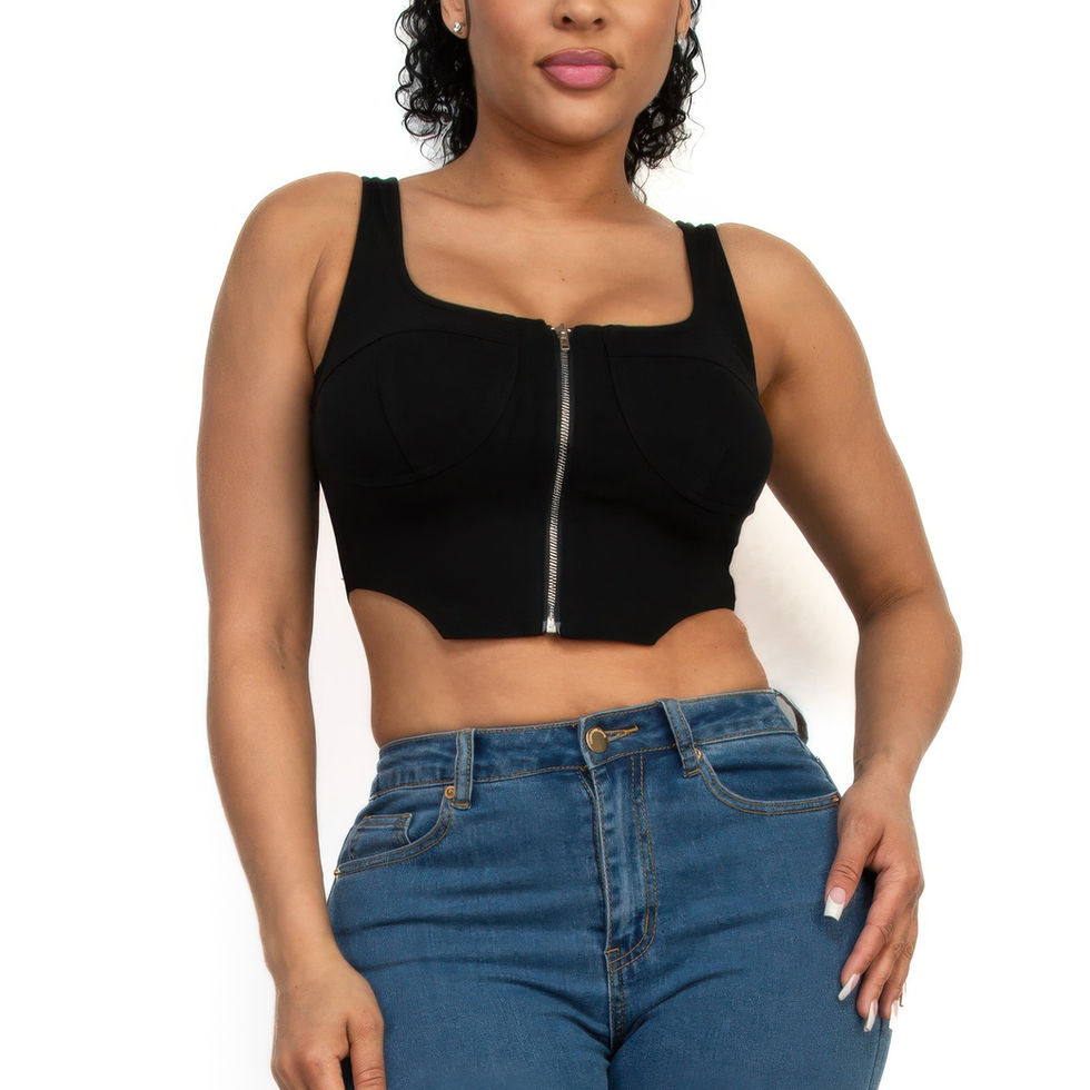 "I love this crop top! The fit is amazing, and the zipper detail adds such an edgy touch. I paired it with high-waisted jeans, and it looks fantastic." - Zoe R.